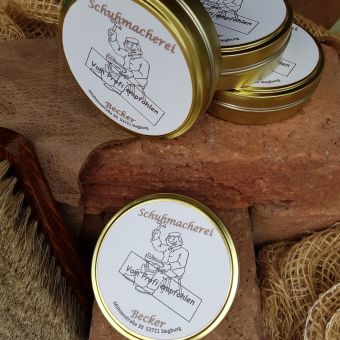Wir haben nun eine eigene Lederpflege. Pflegen Sie Ihre Schuhe, Taschen etc. mit einer nährenden Pflegeformel. Dieser Lederbalsam ist ein Naturprodukt ohne Silikone oder Mineralöle. Natürliches Bienenwachs und Olivenöl sorgen für ein geschmeidiges Leder. Der neue Balsam lässt sich leicht auspolieren und hinterlässt einen leichten seidigen Glanz ohne das Leder zu beschweren.
